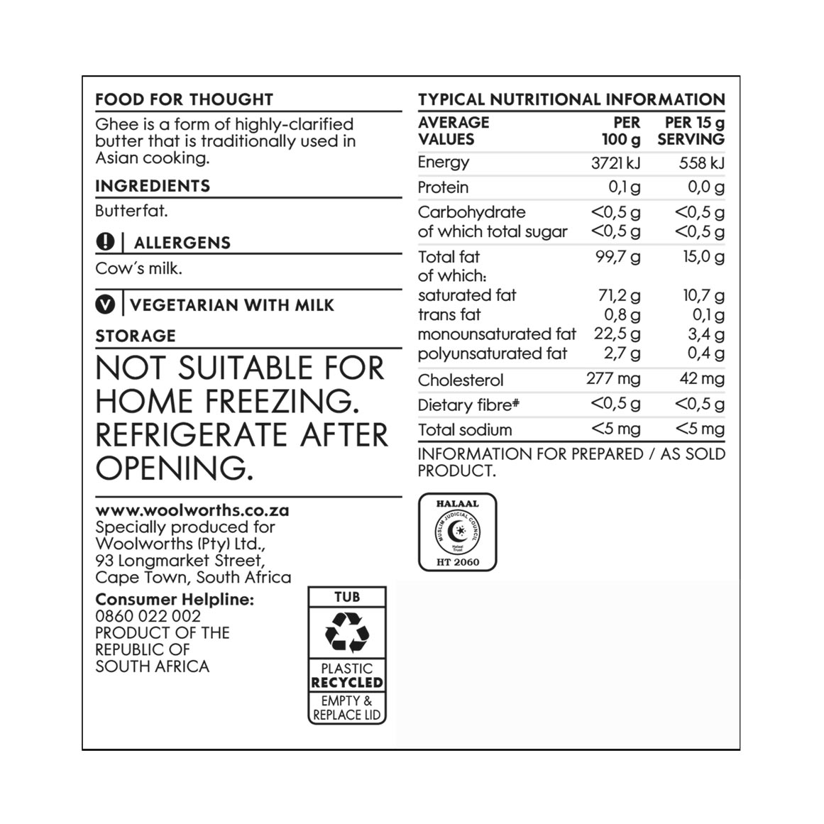 Woolworths provides general product information such as nutritional. To make ghee butter is melted and simmered for an extended period to cook off the water turning the butter pale. Ghee is butter that has had its milk solids removed making it clear. 2 for R9995 each Older Girls Printed Leggings.
